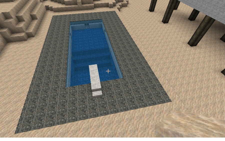 Pool with surrounding slab is 25 long, 15 wide and 5 deep at the deep end. Will paste at ground level from the shallow end of pool. Stand at the level you want the top of the pool deck when pasting. You may need to rotate schematic to the desired orientation for your purpose.