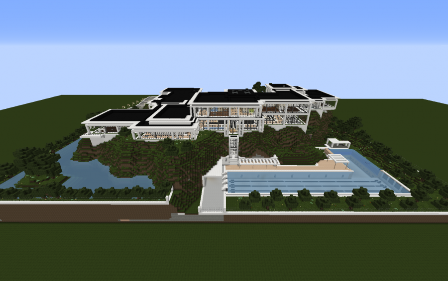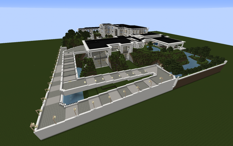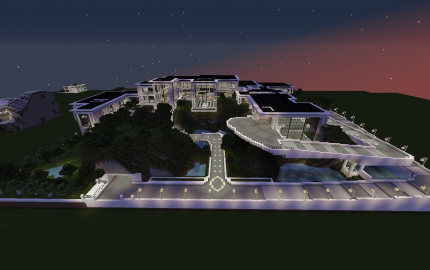 This modern masterpiece is by far the most massive creation I've ever made. The screenshots do not do it justice as to the magnitude of this estate. This massive mansion, embedded into a hilltop range, is stunning. Inside these windowed walls you'll find a massive garage, a theatre to fit all of your family and friends, 3 bedrooms plus 2 spares in the back, a master suite whose size rivals that of most houses, complete with a his/hers dressing suite and the master bathroom to boot. The expansive great room towers all three floors, complete with views of the courtyard and driveway below. The large entrance includes an equally large staircase to the main floor, and leads you to all of the areas throughout. In the rear of this mansion you'll find a staircase that leads down to the pool deck out back. You have access to a full length lap pool, and connected to that is an infinity pool. In each corner of the property is a large water basin, with trees and beautiful foliage lining the entire estate. There's gorgeous sight-lines throughout the entire property! I have left the floor plans open for each person to fill out to their desire, so feel free to decorate how you'd like. Be the envy of your peers, the talk of the town. Download this immaculate residence today and see what TRUE Luxury looks and feels like! FOR BEST RESULTS USE FLOWS MODERN HD RESOURCE PACK. this house is based off of those textures.
