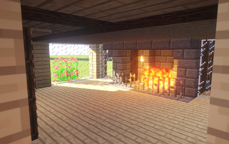 | Fire spreads to wood columns in the fireplace. Put obsidian on each side of flames to prevent spreading. |