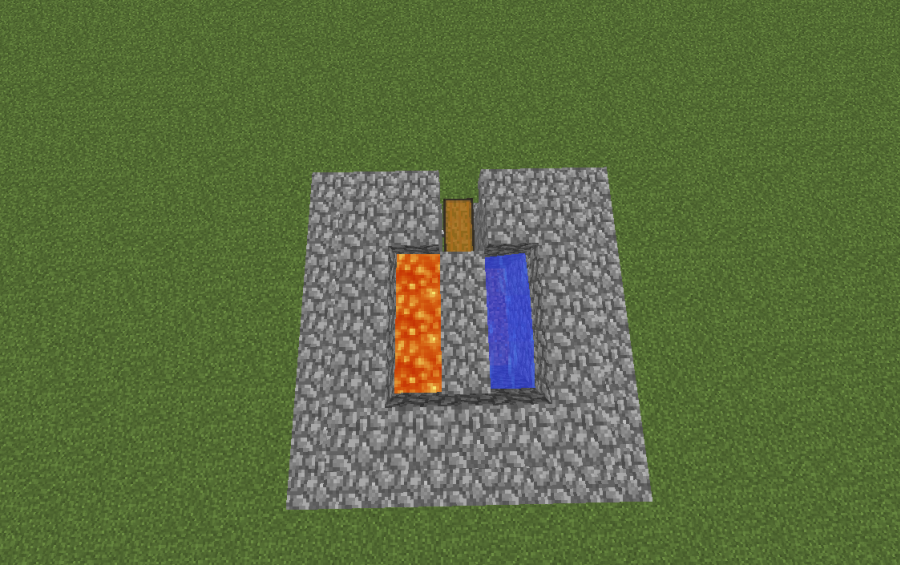 Obsidian is the result of lava and water, is it not? What is the overall mechanic of generating this stone? Do I need to mine the cobble in the middle? |