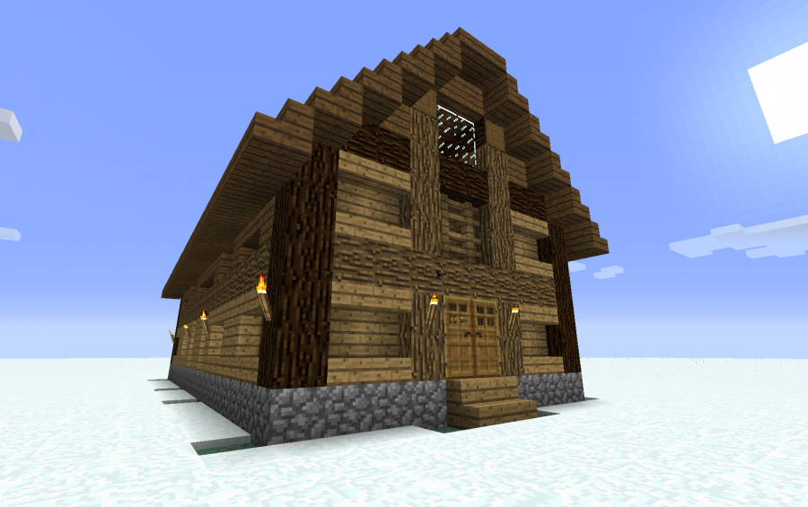 A nice, snug cabin for the winter biomes. includes everything you need to survive. it has two furnaces, two crafting tables, and four beds.