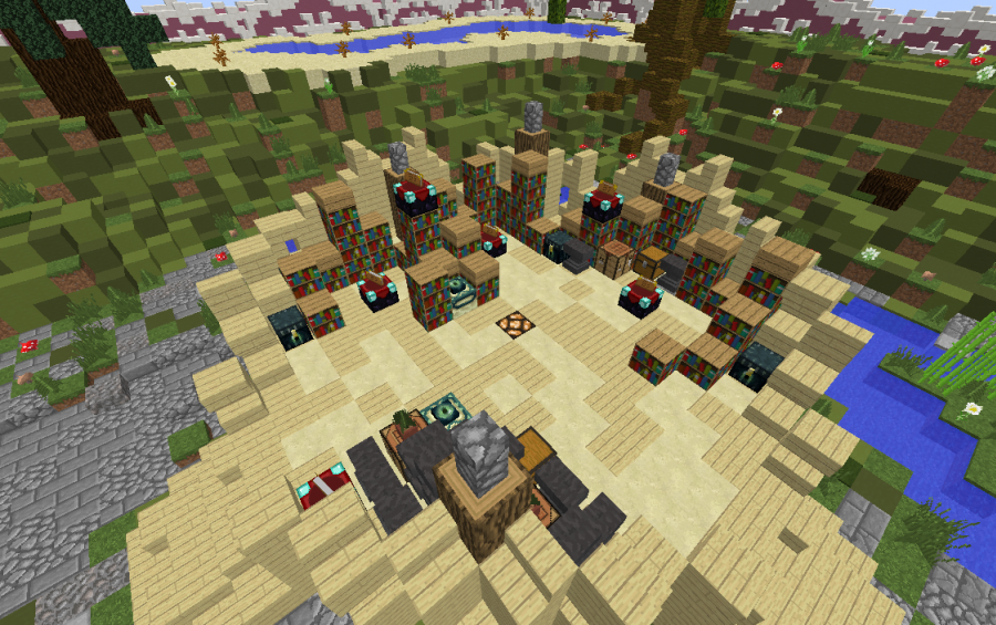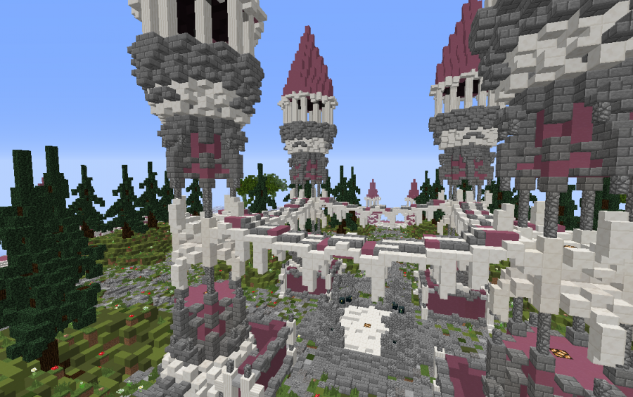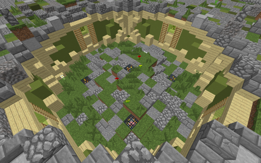 This spawn consists of a fortress inspired by a medieval style together with a small forest inside it, but adding a semi-detailed vegetation and a colorful surface to the walls of the fortress.