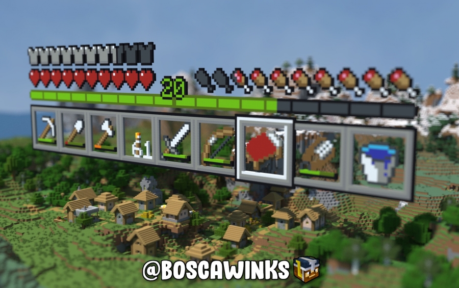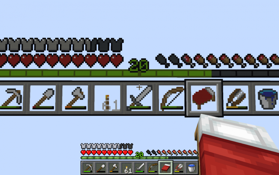 A model of the hotbar (1 pixel : 1 block) I made way back (as you can tell from the bed, bucket etc.).