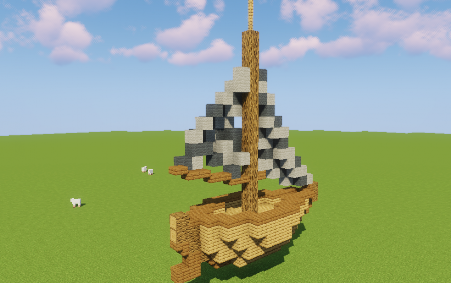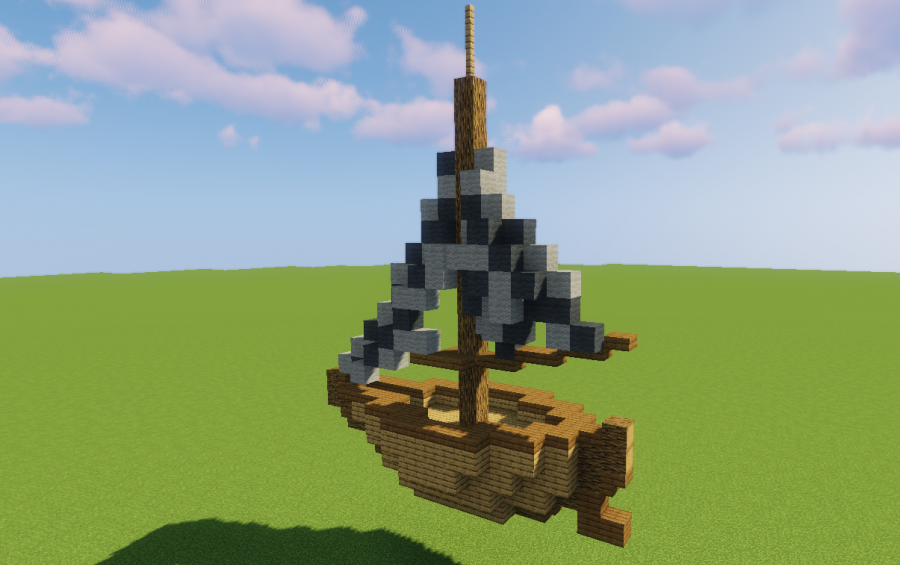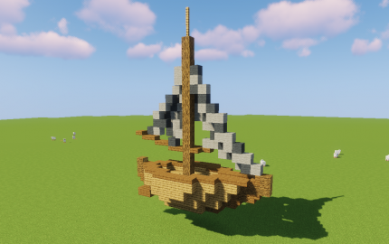 Today i built a small sailing boat in a midieval style out of wood and wool. This small ship fits perfect in every midieval fishing town or in general in water next to a midieval city. The inside is hollow and 2.5 Blocks high, so interior and living in the boat is possible, for example as starter Base.
