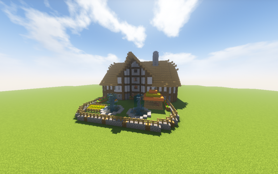I present you another very nice, large and cozy house in the medieval style, which is perfect for both survival and creative play.The house has everything you need for a comfortable game, as well as a vegetable garden and two fountains.