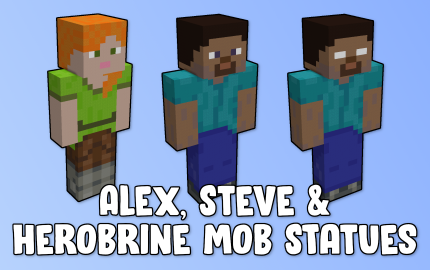 I finally made Alex, Steve & Herobrine Mob Statues (or Player Statues?) at a 1 pixel : 2 blocks scale!