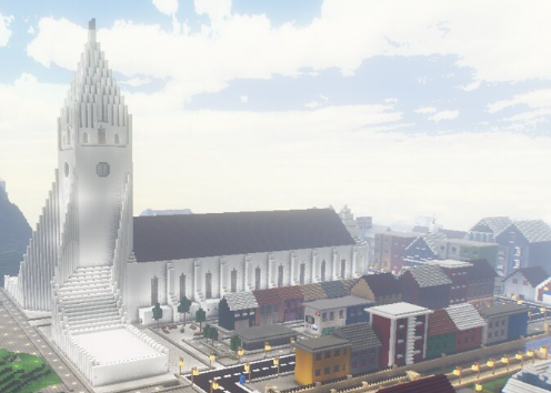 Hallgrímskrikja Cathedral of Reykjavíik in iceland with neighborhood house.