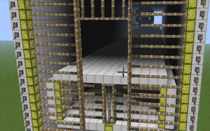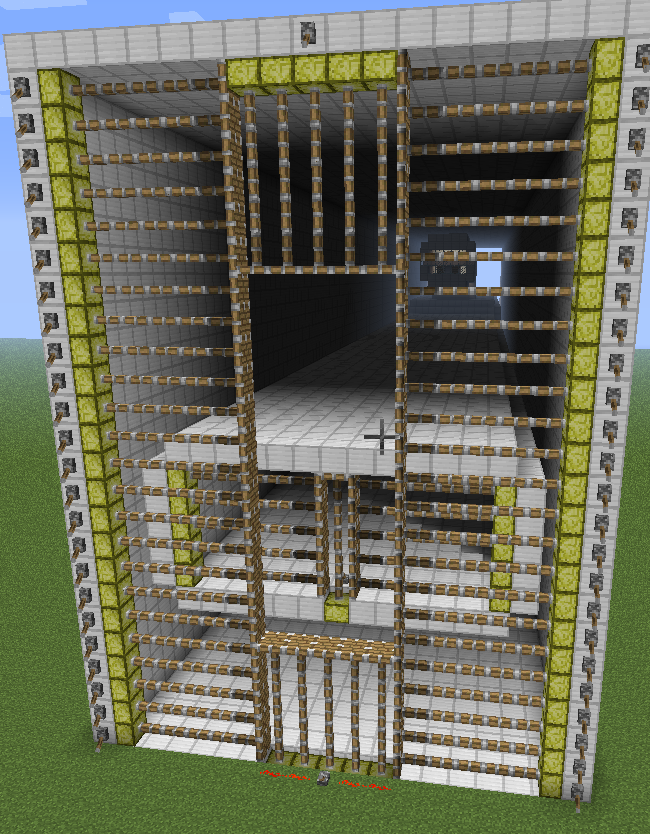 A massive ship I've put inside a bigger iron box. Looks ugly as shit from the outside of the box, but there's a complex gate mechanism at the begining, and the interior of the ship is pretty cool. No weapons or any of my bots, but I may add some.