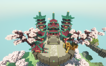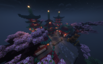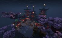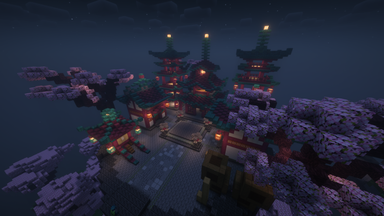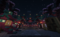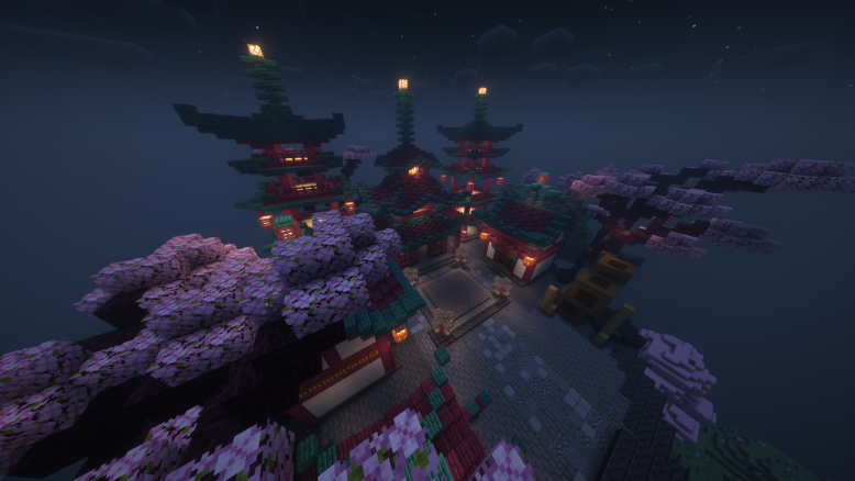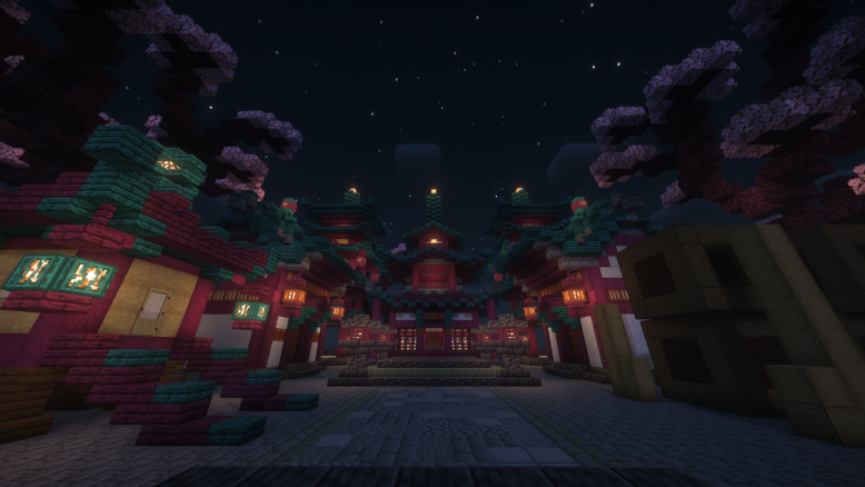 The ancient Chinese town was rebuilt in a cherry blossom style