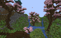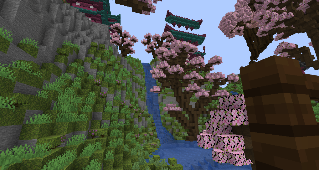 The majestic, poetic mountain landscape, surrounded by many cherry blossom trees exudes ecstatic beauty.