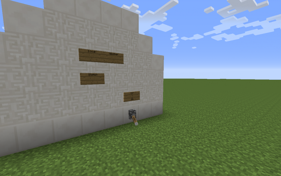 A weather station that toggles the rain off when it starts to rain. It has a 300 block radius in which it will work (This can be increased in the command block inside).