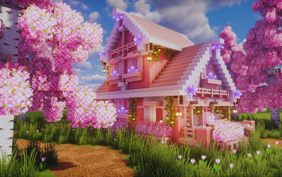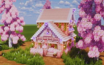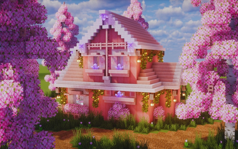 This cozy pink cottage is fully decorated inside and out! π‘β¨ Itβs perfect for adding charm and color to your cottagecore village or natural Minecraft world.