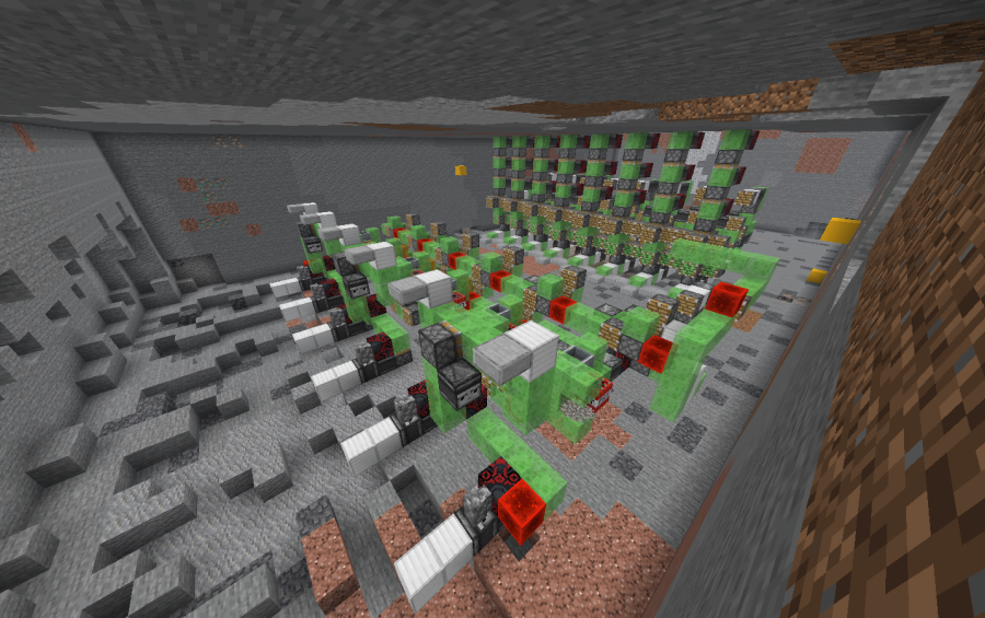 The quarry extends from coordinate 8 to 103, but if you want, you can upgrade it to go lower or higher. It only has 8 block harvesting machines, but you can expand it to 12, 18, 32, and more, as long as your PC supports it. Once the quarry is built, look for a piston near the note block and remove it. Then, press the note block and the quarry will begin. Read the signs I left in the quarry.