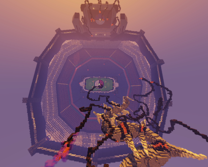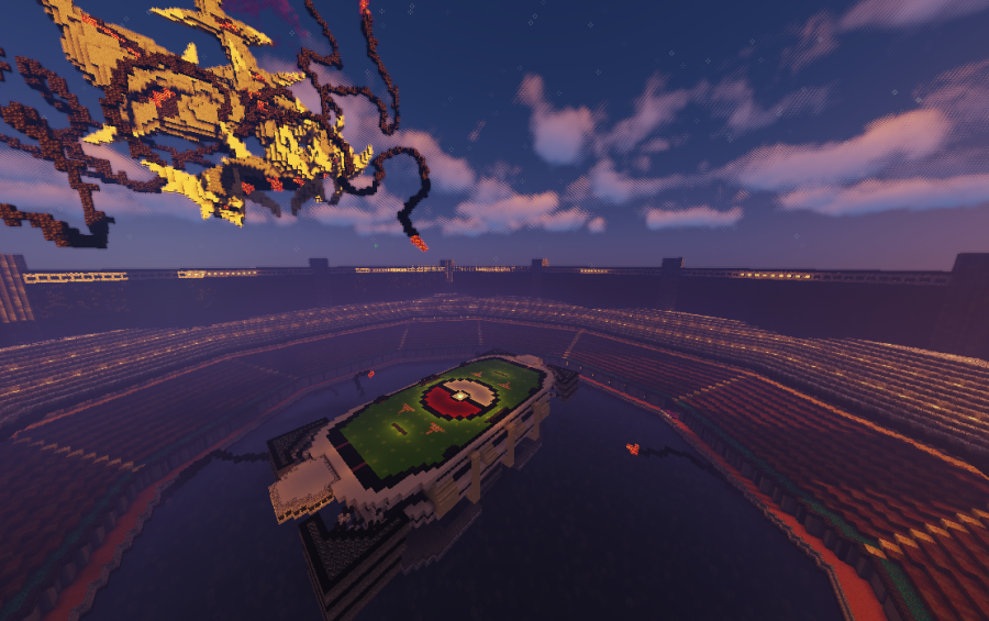 Unleash legendary battles in this massive 250x250 Pokémon-themed stadium, dominated by an epic 3D Giratina sculpture tearing through the sky! Perfect for servers, minigames, or themed events.