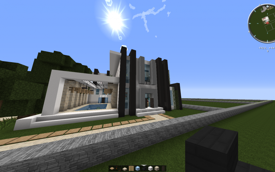 It's a simple modern house ideal for small venues, I use 45x45 modern HD texture pack. is simple but functional.