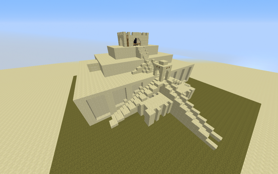 In history class we were studying Mesopotamia and eventually we were assigned projects. We had to create our own Ziggurat out of whatever material we wanted. I stuck to building my Ziggurat out of styrofoam while my friend had another idea. He wanted to build his Ziggurat in Minecraft. So I setup a server and we built this in about 20-30 minutes. I was looking over this image for inspiration: