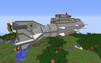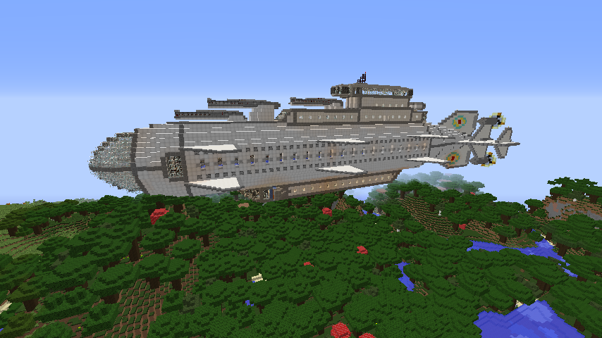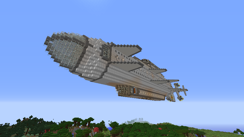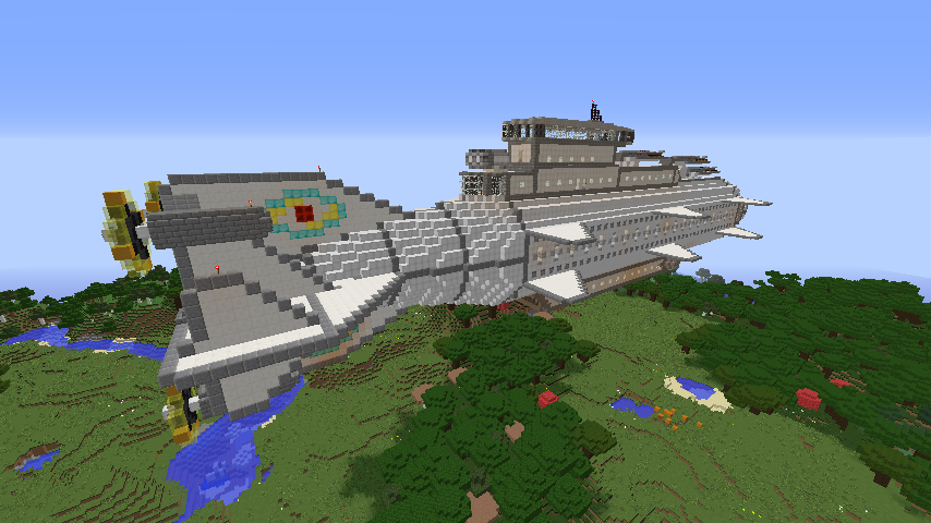 These cannons are mounted on the top of the ship's front half. All three are wired to be able to fire from the bridge and the tower. Each cannon has an estimated effective range of 150 to 200 blocks.