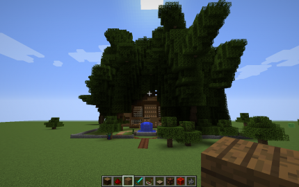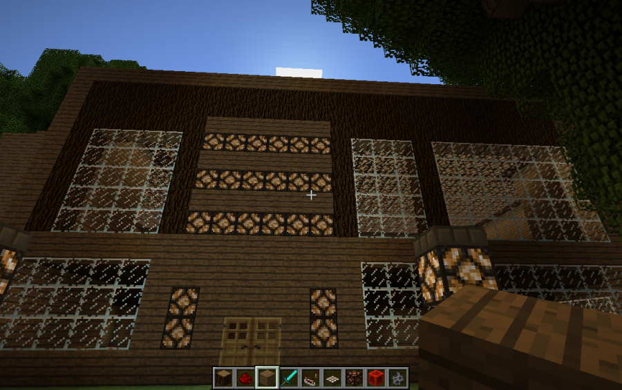 a house with redstone lamp and redstone fountain , the redstone lamp dont work fine but we will fix it the house is in wood :-)