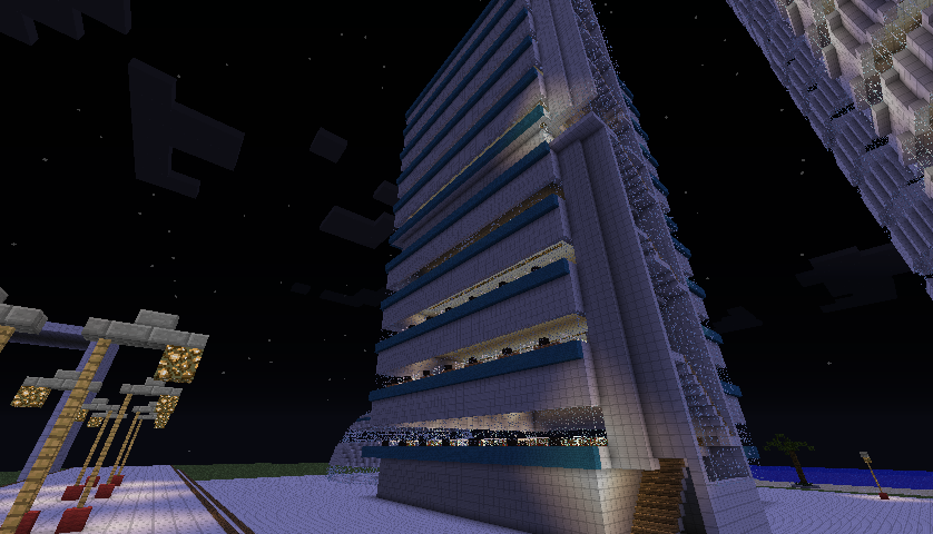 one of the completed office buildings from my city. has furniture.lights and stairs.on the ground floor there is a small round building coming out from the office building no furniture in there. size:60 wide...126 long.....117 high