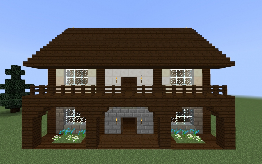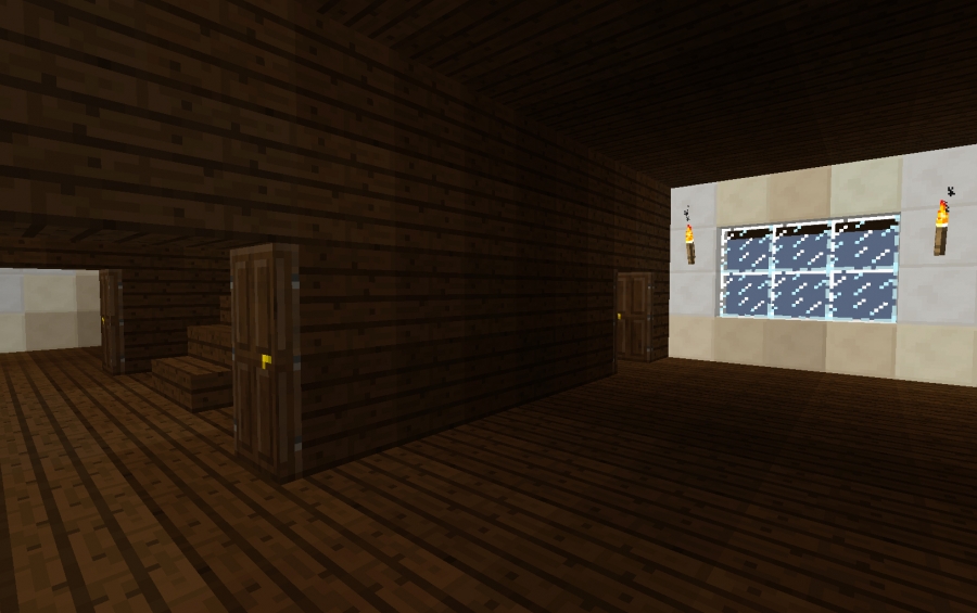 Stone Brick, Dark Oak Wood Plank, Block of Quartz, Glass Pane