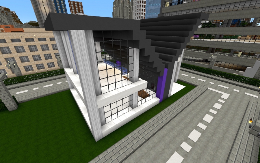 Small modern house to add to any modern cityscape on your server. Inverted roof design and multi-level.