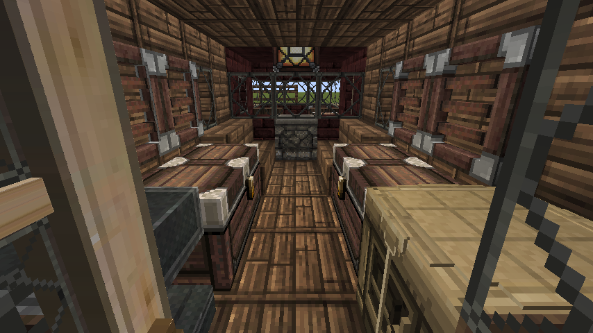A truck, outfitted for an expedition. Features a bunk for a team driver, a furnace for heat/cooking, a workbench, and anvil and a number of storage options.