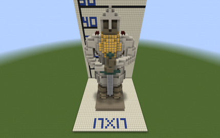 The armor is made of quartz blocks, the beard and the hair are made of gold blocks.