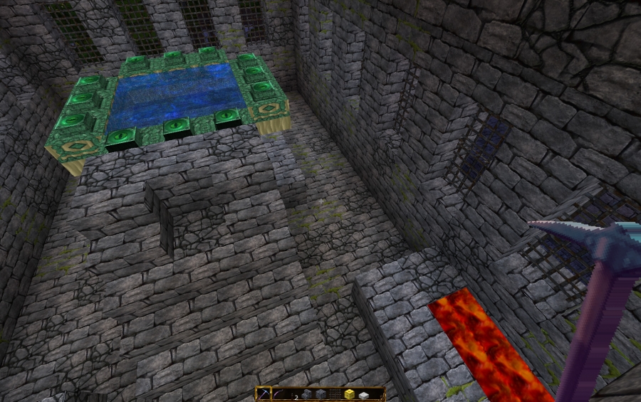 This is the ender stronghold that Minecraft generates. I have lifted it out of the ground repaired the broken bits and put iron bars on empty areas to the outside. As you probably know there are lots of silverfish mobs which come in the form of stone brick monster eggs. These have been replaced with stone bricks. A silverfish spawn has also been removed. The ender portal is working so if you jump in you will go to the end game. I am uploading it for those that want to see in safety what the ender stronghold looks like. And to work out a navigation because this is very difficult. The materials in the chests are what came I did not add them. I think I have been through all parts of this but I'm not really sure so if you find an area without glostone I have not been there.