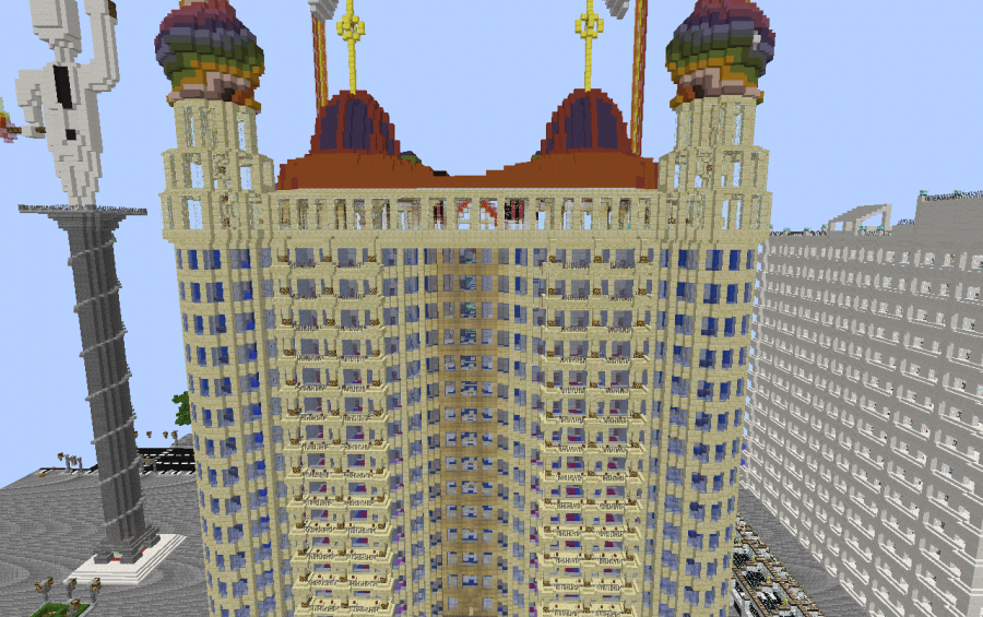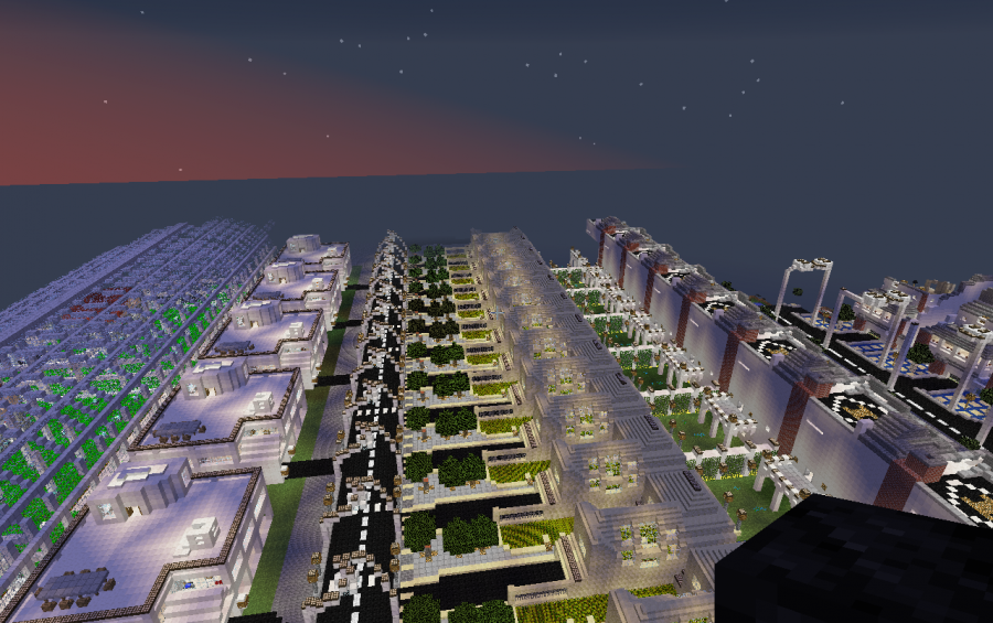 A world full of luxury with space for more than 10000 habitants and a lot of crops to feed them. A lot of villagers (that respawn if you kill them), big buildings and a lot of pretty houses.
