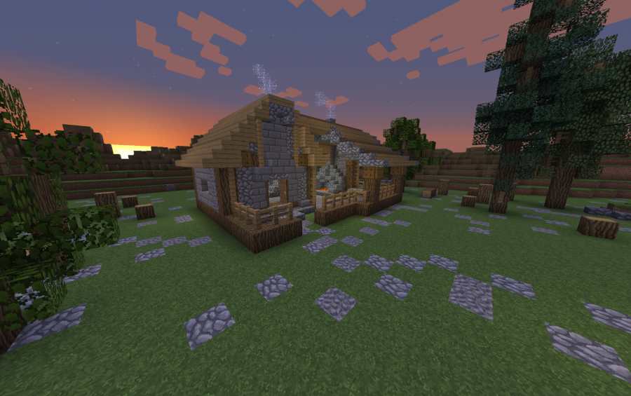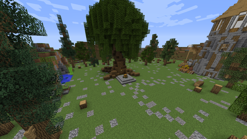 A PVP map that has custom trees, a medieval tower, a medieval smithy, and much more!