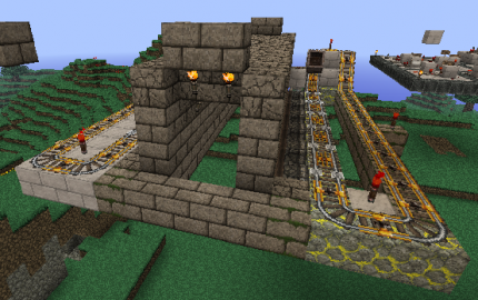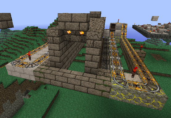 Stepping on the pressure plates at the start set off two mine-carts which set off pistons, which in turn make the floor for you to run across.
